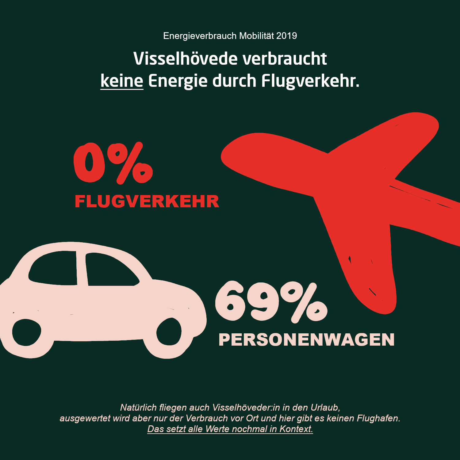 Mit 34% erneuerbarer Wärme liegt Visselhövede hier zwar auch über dem Bundesdurchschnitt von nur 15%, aber nur weil die Leistung anderer ungenügend ist, ändert das das eigene mangelhafte Verhalten nicht. Und genau solche Punkte müssen identifiziert werden im Konzept und Maßnahmen gefunden werden, um sie schnellstmöglich auszugleichen. Dabei kann die Stadt an vielen Stellen ihren Einfluss spielen lassen, aber auch die Anwohner:innen sind gefragt ihre Ideen einzubringen.