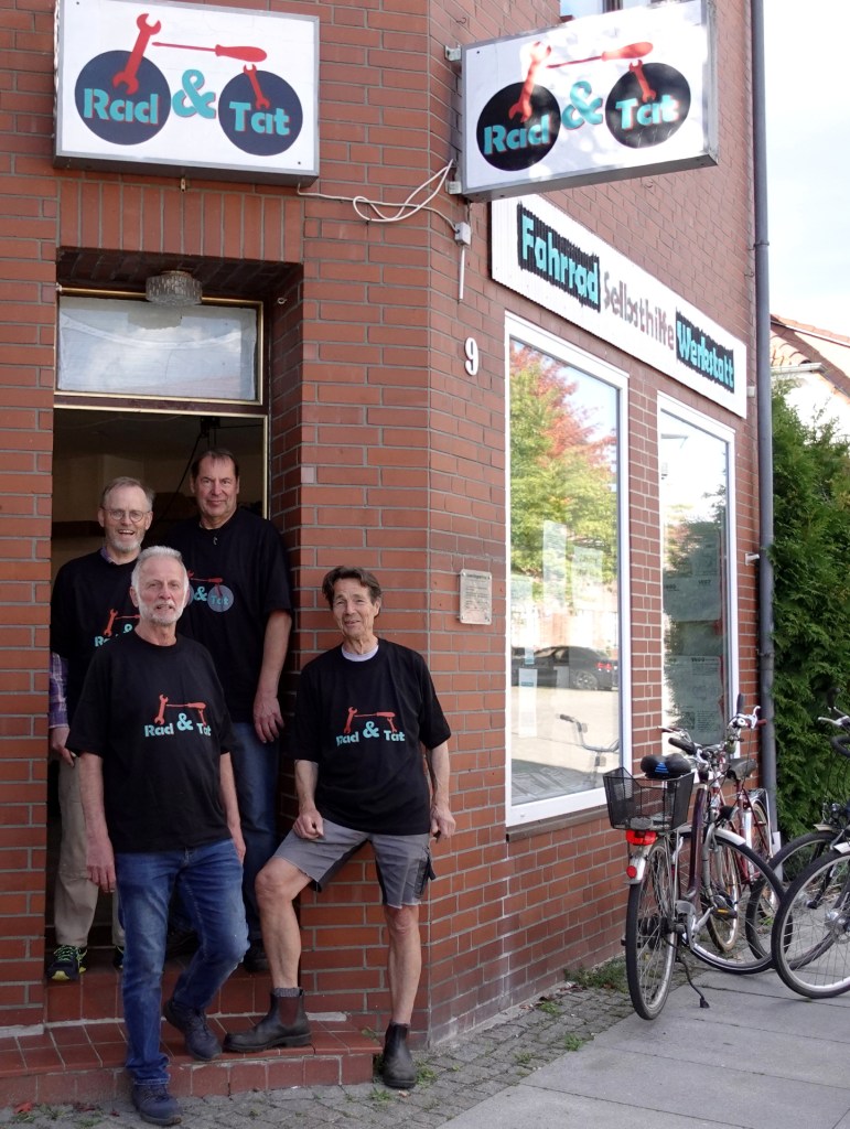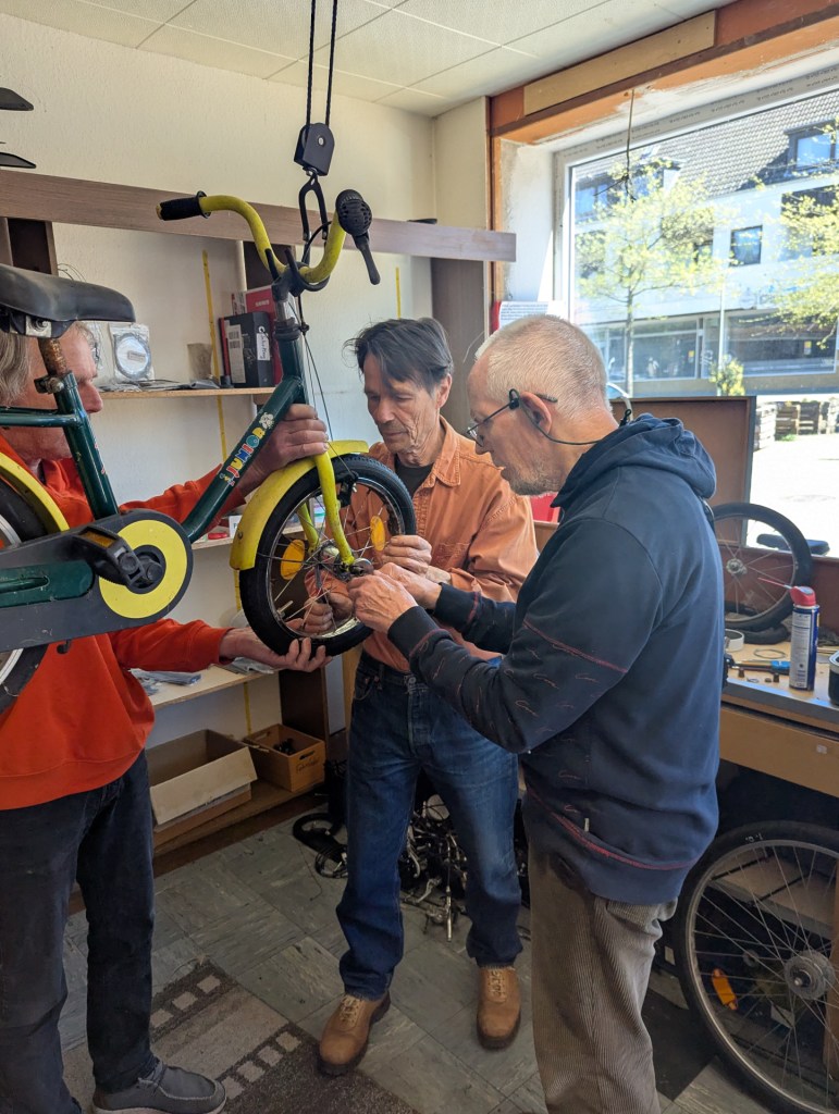 Vom Frühling bis in den späten Herbst hinein, wurde dann bei Rad & Tat wieder fleißig geschraubt, gepumpt und gedreht. Unter anderem unterstützt durch einen neuen Fahrradmontageständer, der ebenfalls durch einen erfolgreichen Förderantrag finanziert wurde. Außerdem hat sich die Crew selber ein paar Shirts zugelegt; damit kann man sie nun von den Zuschauern auf dem Sofa besser unterscheiden.